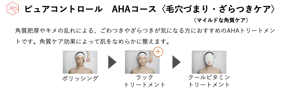 角質肥厚やキメの乱れによる、ごわつきやざらつきが気になる方におすすめのAHAトリートメントコース